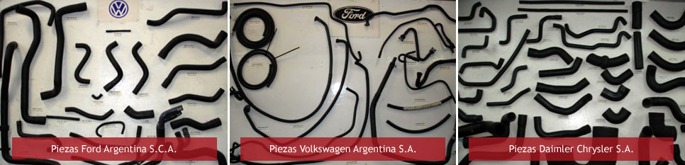 Como ya hemos mencionado, la empresa se especializa en la fabricación de mangueras curvas y rectas, en elastómero, para circuitos de refrigeración, calefacción, combustible, y sistemas auxiliares (vacío, recirculación, etc.), con o sin inserto textil. Además se elaboran moldeados en elastómeros. Según requerimientos de los clientes, estas mangueras se entregan formando conjuntos con componentes tales como abrazaderas, acoples, protectores, etc.